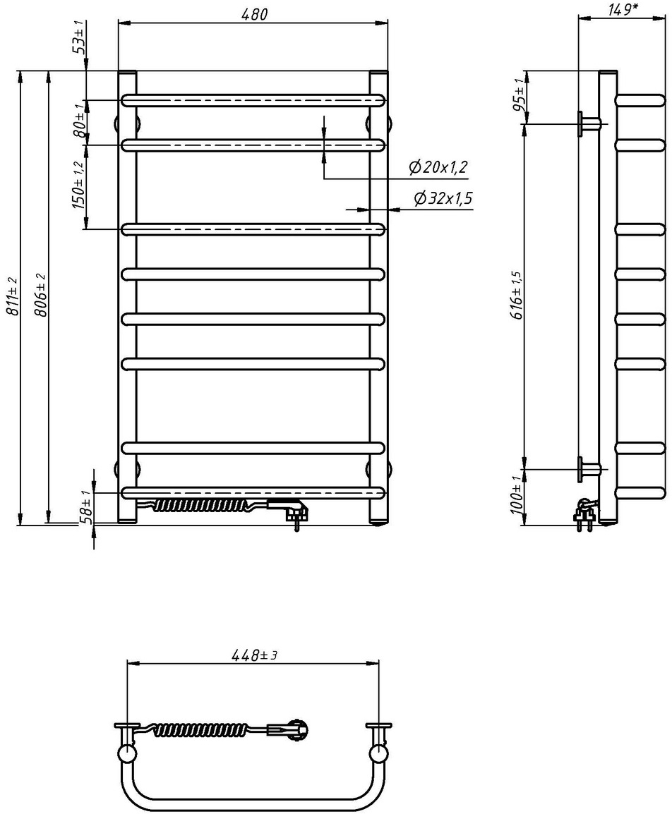 | Комплектация (возможны изменения в разных поставках) | Документация, Комплект креплений, Полотенцесушитель, Шестигранный ключ |