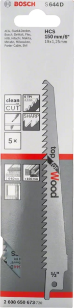 - Полотно пильное сабельное Bosch S 644 D Top for Wood, 5шт