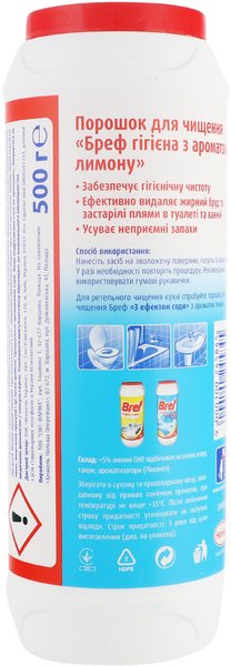 Порошок для чистки Bref с активным хлором Лимон - порошок для чистки с дезинфицирующими свойствами.