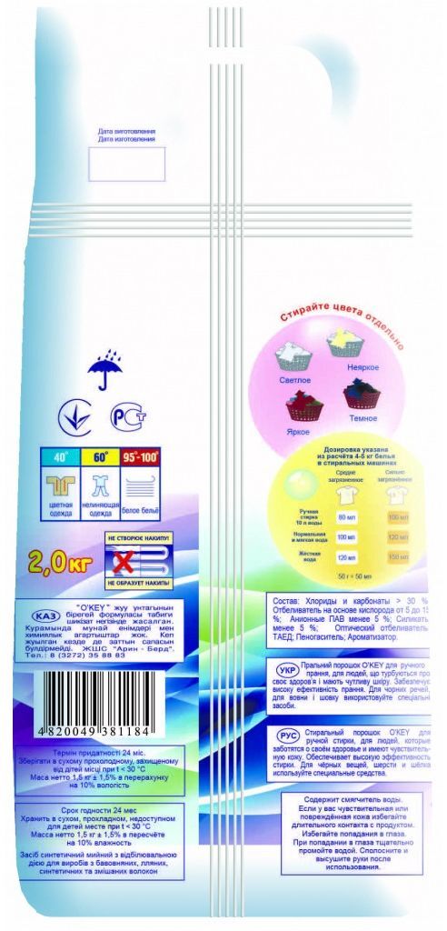 - Порошок для стирки O'KEY Universal автомат 2кг екопак