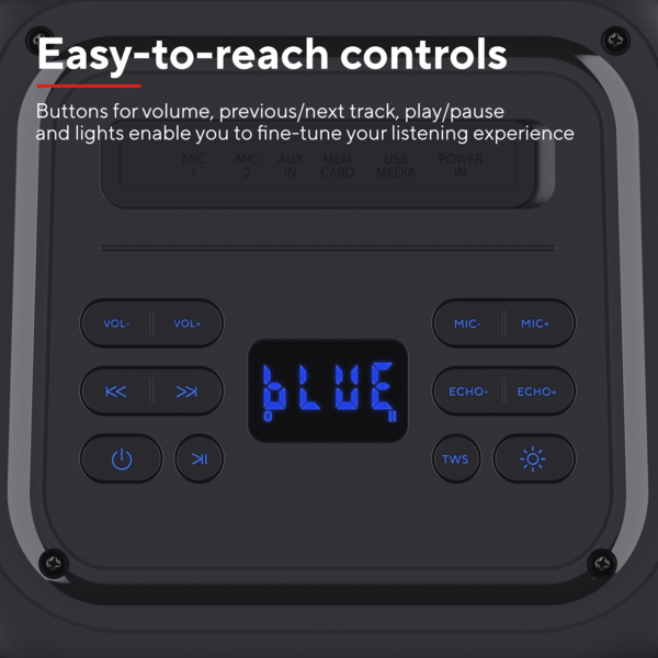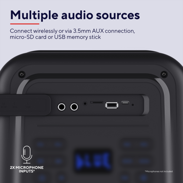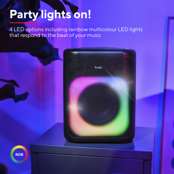 В этой колонке для вечеринок звук сочетается со зрением. В комплекте с разноцветными светодиодными лампочками с четырьмя световыми эффектами вы можете синхронизировать подсветку в такт музыке.