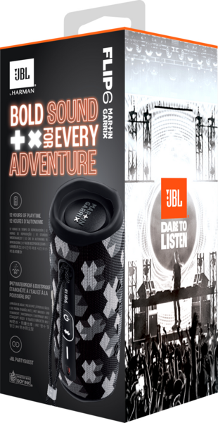 Компания JBL стремится к созданию более экологичной и безопасной для окружающей среды упаковки. Flip 6 Martin Garrix упакована в коробку из бумаги, пригодной для вторичной переработки, включая внутренний лоток. Пластиковый ярлычок более чем на 90 % состоит из вторсырья, а внешняя сторона напечатана соевыми чернилами.