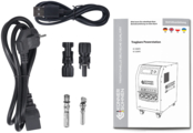 | Комплектация (возможны изменения в разных поставках) | Документация, Кабель USB, Кабель питания, Коннектор - 2 шт., Коннектор MC4 - 2 шт., Портативная электростанция |