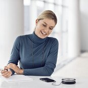 - Лучшее качество конференц-связи – заменяет микрофон и громкоговоритель ПК или мобильного телефона
