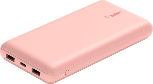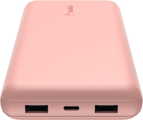 - Портативный аккумулятор Belkin 20000mAh 15W, Dual USB-A, USB-C Rose Gold (BPB012BTRG)