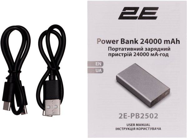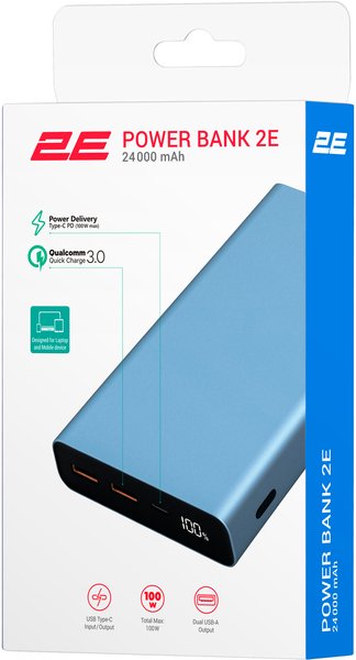 - Портативный аккумулятор 2E 24000mAh, PD100W, steel (2E-PB2502-STEEL)