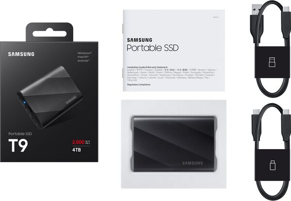 - Портативный SSD Samsung 4TB USB 3.2 Gen 2 Type-C Shield T9 Black (MU-PG4T0B/EU)