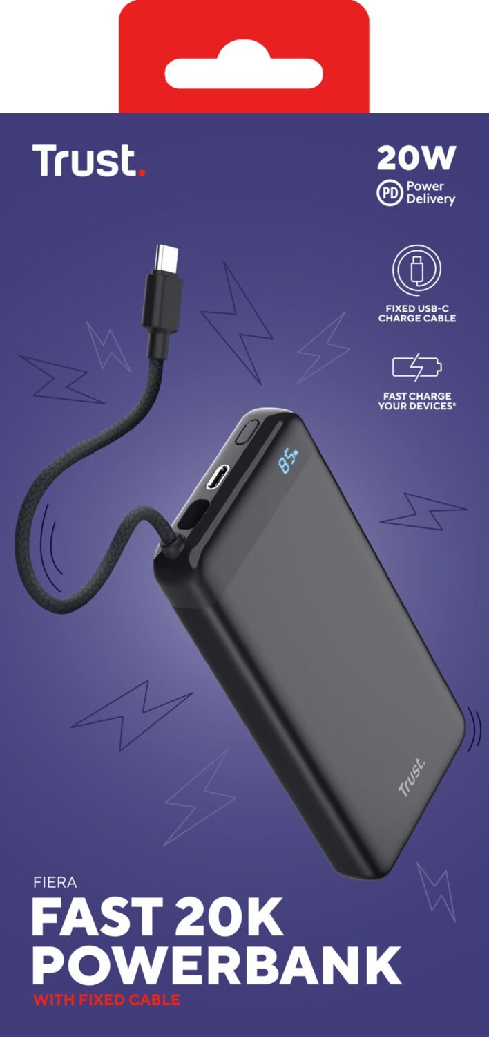 - Портативное зарядное устройство Trust Fiera, 20000 mAh 2хUSB-C, 20W, PD/QC 3.0 Black (25881_TRUST)