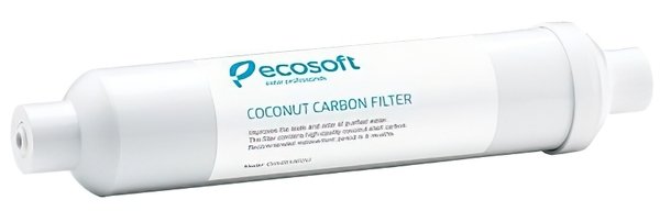 Угольный постфильтр Ecosoft представляет собой цилиндрический корпус, внутри которого находится фильтрующий материал - активированный уголь из скорлупы кокосового ореха.