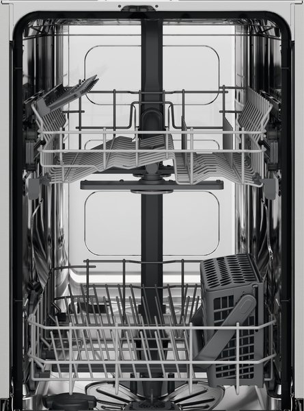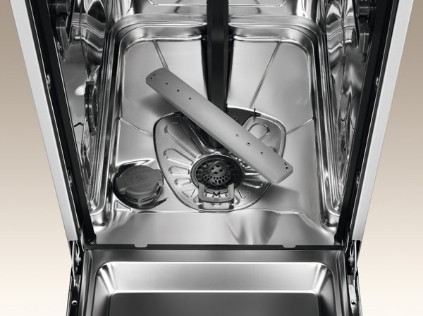 Два вращающихся разбрызгивателя этой посудомоечной машины охватят водой каждый бокал, блюдо и тарелку. Эти разбрызгиватели позаботятся о том, чтобы вода охватила каждый уголок, а посуда при выгрузке сияла чистотой. Как в верхней, так и в нижней корзинах.