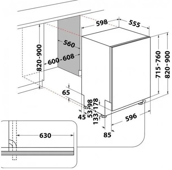 | Ширина для встраивания, мм | 600-608 |