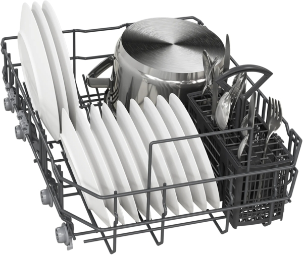 Многие посудомоечные машины Siemens оснащены верхним коробом, который регулируется по высоте. Благодаря такому техническому решению, вы легко при необходимости сможете разместить высокие бокалы в верхнем коробе или тарелки большого диаметра в нижнем.