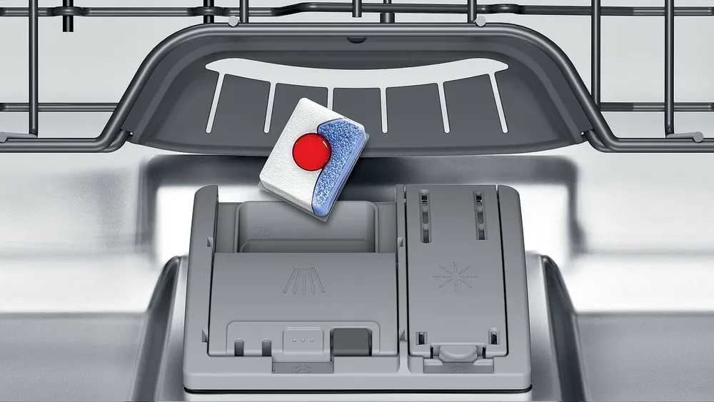 С системой dosageAssist таблетка моющего средства направляется непосредственно в небольшую кювету, где равномерно растворяется под действием направленных струй воды, что гарантирует оптимальное мытье посуды.