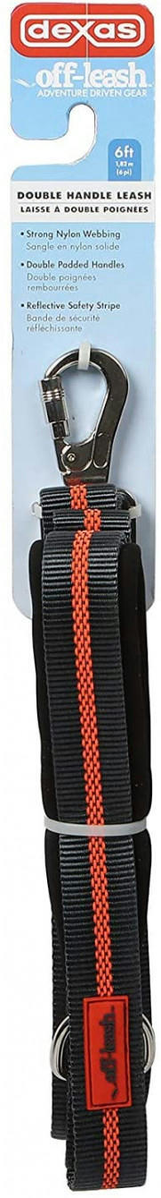 Поводки Dexas изготовлены из прочной нейлоновой тесьмы и имеют светоотражающую полосу по центру для дополнительной безопасности во время прогулок утром или поздно вечером. Поводок оснащен двумя мягкими ручками, которые обеспечивают лучший контроль над собакой на улице. Мягкая подкладка ручек добавляет комфорта рукам и запястьям, особенно во время контроля больших собак или тянущих хозяина на прогулке.