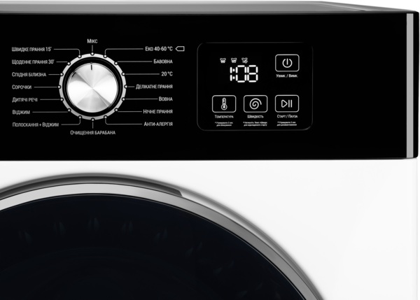 Цифровой дисплей обеспечивает интуитивно понятное управление, а такие функции, как отложенный старт, блокировка панели и возможность добавления белья во время работы программы делают устройство максимально удобным в использовании. Встроенная программа самоочистки барабана горячей водой продлевает срок службы машины и гарантирует гигиеническую чистоту внутренних поверхностей.