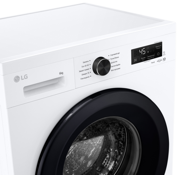 Описание товара Стиральная машина LG фронтальная, 6кг, 1200, В, 44см, дисплей, пар, инвертор, белый