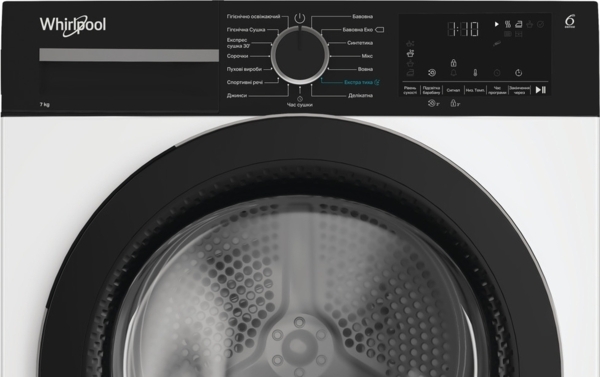 Управление без лишних усилий. Эта сушильная машина Whirlpool оснащена интуитивным интерфейсом пользователя для чрезвычайно простого использования.
