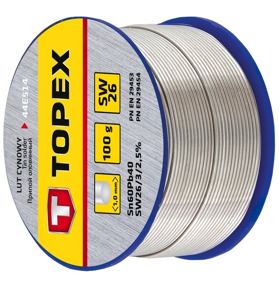 - Припiй оловянный TOPEX 60% Sn, проволока 1.0 мм, 100 г 44E514