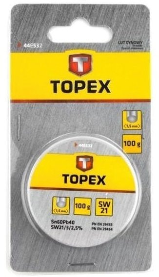 - Припiй оловянный TOPEX 60% Sn, проволока 1.5 мм, 100 г 44E532