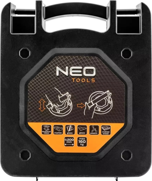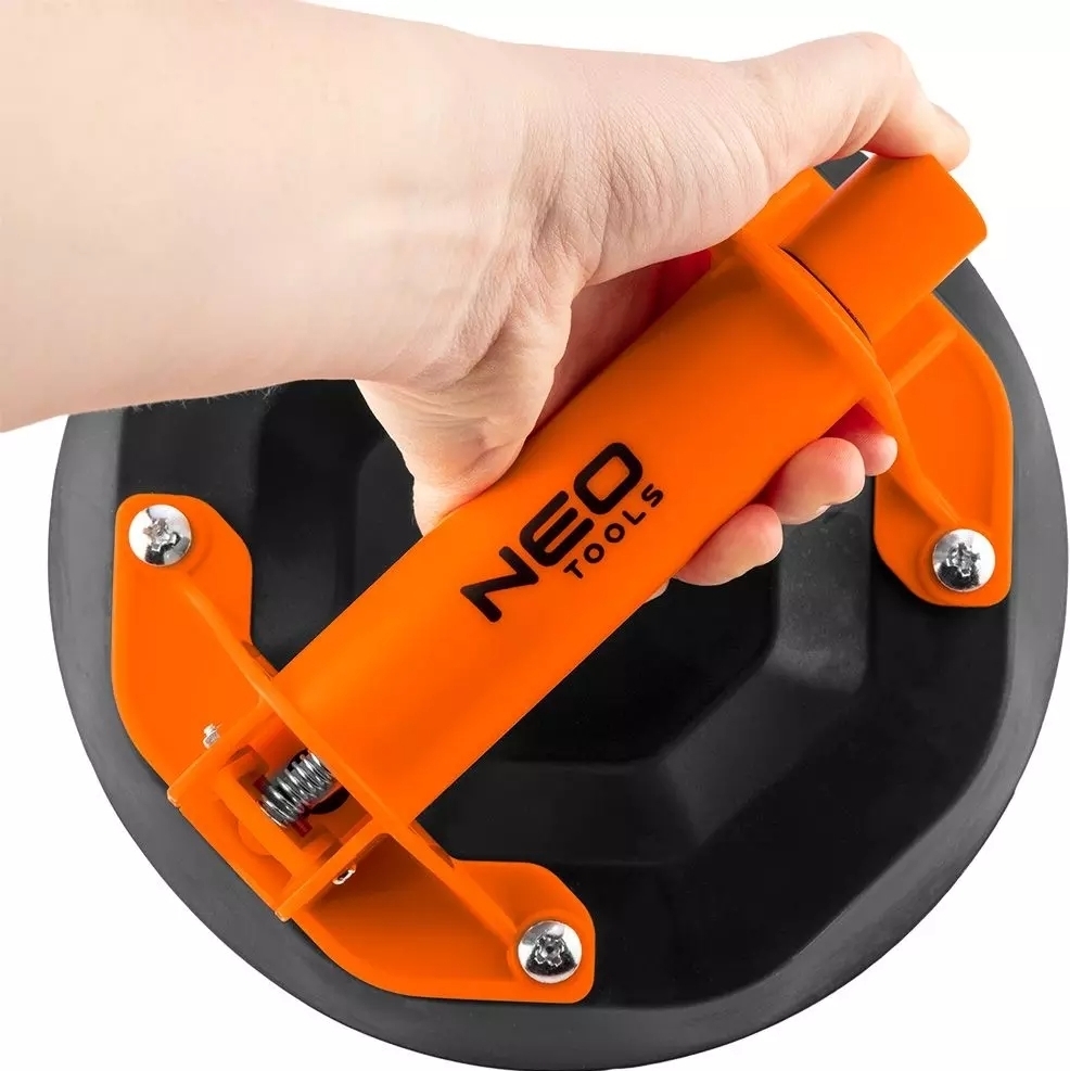 Присоска Neo Tools - это инструмент, предназначенный для перемещения материалов с плоскими и гладкими поверхностями. Он идеально подходит для перевозки стекла (оконного или автомобильного), жести, керамической плитки или ламината. Присоска оснащена вакуумной помпой, которую также можно использовать для выравнивания вмятин на корпусах автомобилей.