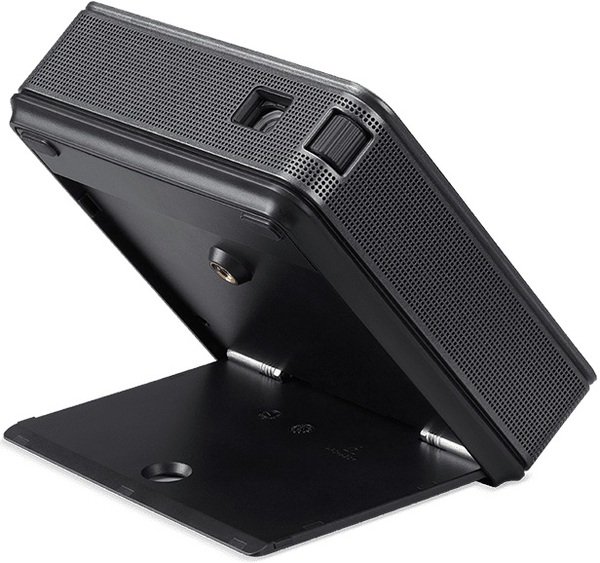 Удобная встроенная подставка позволяет настраивать и проецировать контент под еще большим углом — даже на потолок. Когда подставка не используется, вы можете хранить ее внутри самого проектора.