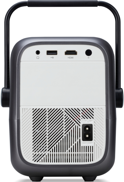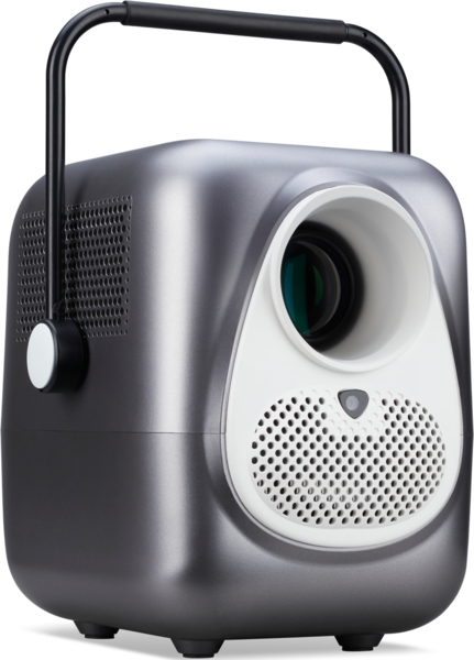 Возьмите этот проектор с собой куда угодно. Ручка для переноски 2 в 1 обеспечивает дополнительную мобильность и одновременно служит подставкой для гибких углов проецирования, а элегантный дизайн проектора украсит любое пространство, создавая идеальные условия для просмотра.
