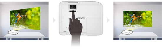 Разместите проектор почти в любом месте комнаты и все равно получите изображение с правильными пропорциями благодаря автоматической вертикальной коррекции и горизонтальной коррекции изображения Easy-Slide. Кроме того, оптический зум позволяет легко и быстро настроить изображение даже в ограниченном пространстве.