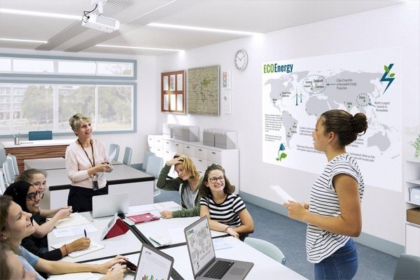 Имеет функцию автоматического включения MTR с помощью обнаружения видеосигнала HDMI и ряд вариантов подключения, в том числе Dual HDMI и встроенный модуль беспроводной локальной сети для передачи содержимого с ноутбуков или мобильных устройств с помощью функции дублирования экрана (Miracast). Поддержка PIN-кода и отображение диалогового имени пользователя при подключении Miracast к проектору, позволяет преподавателю блокировать прерывание студентом во время проектирования. Совместимость с программным обеспечением iProjection обеспечивает простое подключение мобильных устройств и совместное использование содержимого.