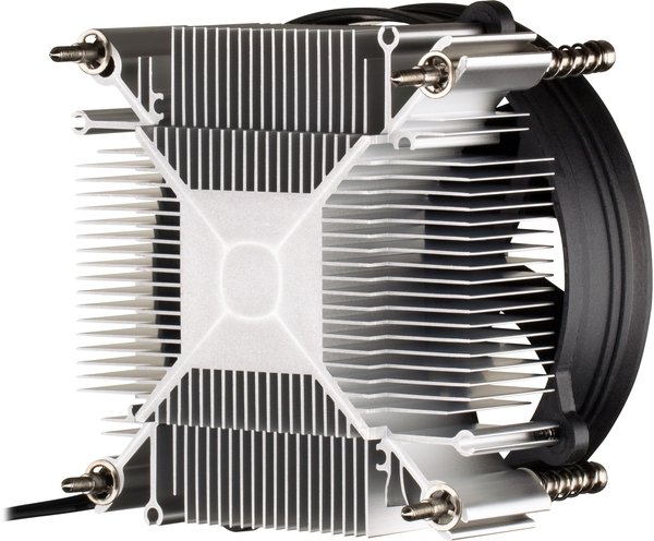 - алюминиевый радиатор с тонкими ровными пластинами имеет оптимальную форму и низкий профиль. Высота кулера составляет всего 50мм;