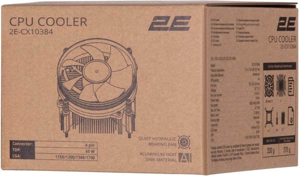 - Процессорный кулер 2E CX10384, LGA1700, 1366, 1200, 115X, 4pin PWM, TDP 65W