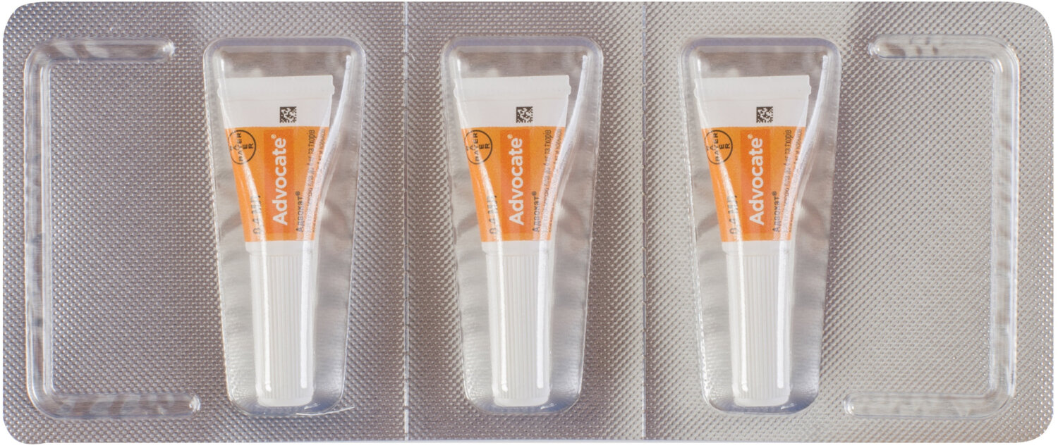 Капли комплексного действия Advocate защитят питомцев от блох, кожных клещей, дирофилярий, а также от наиболее распространенных желудочно-кишечных и легочных гельминтов.