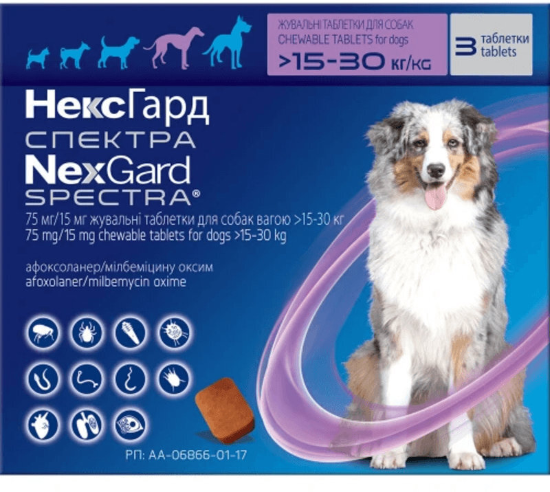 Противопаразитарные таблетки для собак 15-30 кг Нексгард Спектра 3 таб