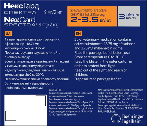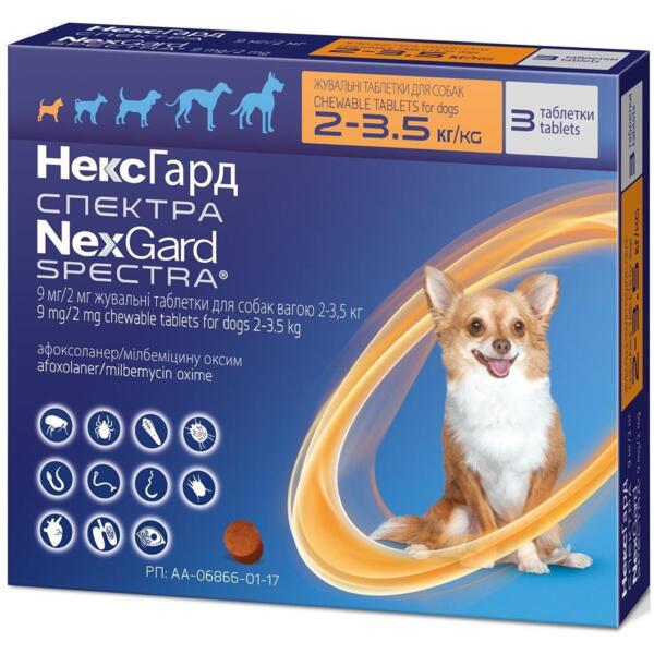 Противопаразитарные таблетки для собак 2-3.5 кг Нексгард Спектра 3 таб