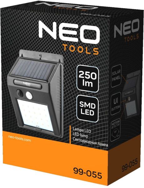 - Прожектор аккумуляторный с датчиком движения Neo Tools, 250 люмен, 1200 мАч, 3.7 Li-Ion (99-055)