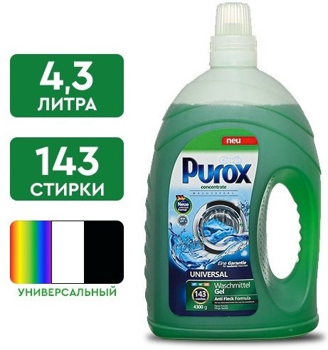 - Исключительная универсальность в удобной гелевой формуле. Универсальный стиральный гель Purox является экономичным выбором, потому что он сочетает в себе доступную цену и исключительную производительность.