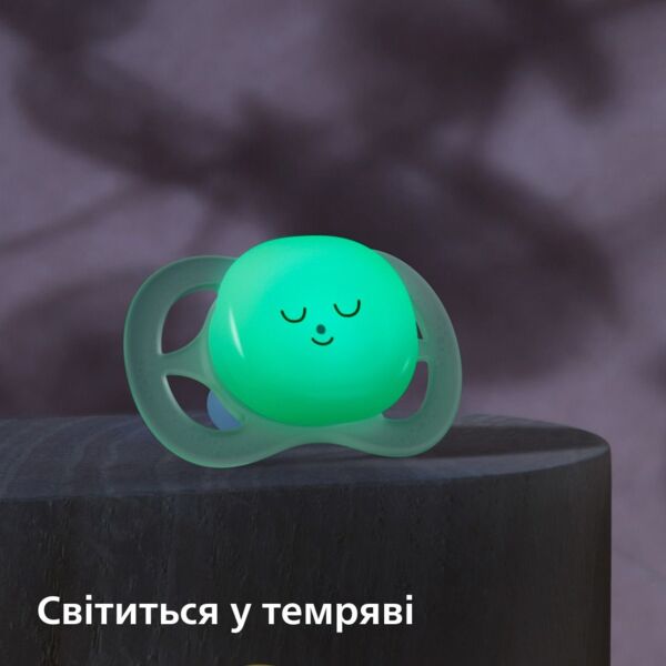 Основание пустышки нежно светится в темноте, чтобы вы могли легко найти пустышку, не включая свет.