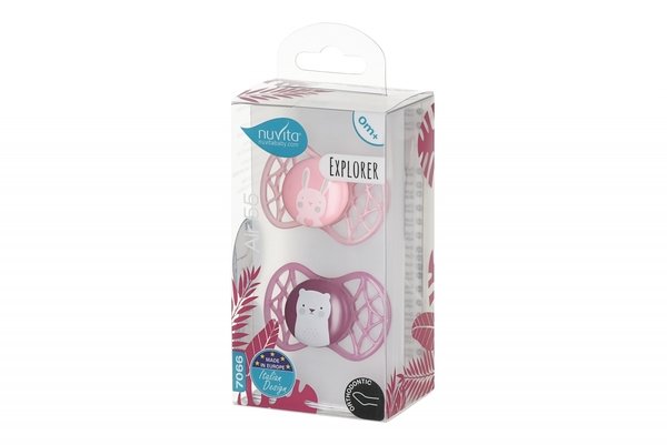 - Пустышка ортодонтическая Nuvita NV7066 Air55 Explorer 0m+ 2шт. (заяц, мишка) (NV7066F)