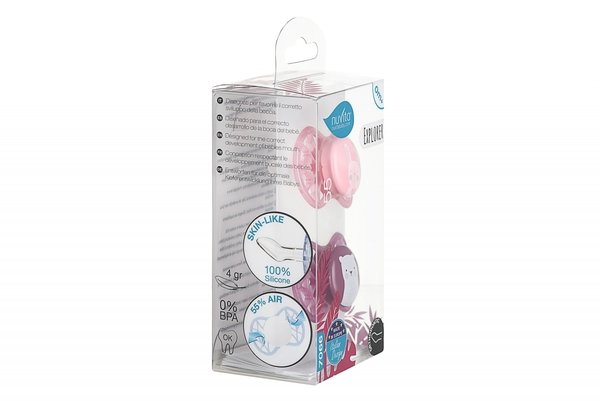 Пустушка силіконова Nuvita серії Air55 Explorer ортодонтична від 0 місяців 2шт. Ортодонтична форма для природного розвитку піднебіння. Полегшена та вентильована форма пластини на 55% складається з отворів, перешкоджаючи скупченню слини в області навколо рота та подразненню шкіри.