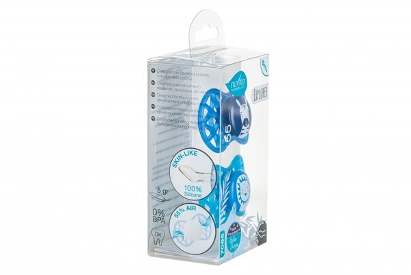 Пустышка силиконовая Nuvita серии Air55 Explorer (зебра, лев) ортодонтическая от 6 месяцев 2шт. Ортодонтическая форма для естественного развития неба. Облегченная и вентилируемая форма пластины на 55% состоит из отверстий, препятствуя скоплению слюны в области вокруг рта и раздражению кожи.