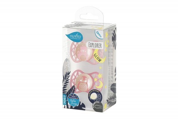 Пустышка симметрическая Nuvita NV7067 Air55 Explorer 0m+ 2шт. светящаяся в темноте (мишка, пингвин) (NV7067GF)