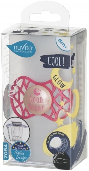 - Пустышка симметрическая Nuvita NV7085 Air55 Cool 6m+ "GOOD NIGHT" светящаяся в темноте, цвета марсала (NV7085GM)