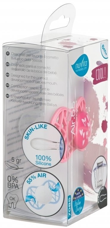 - Пустышка симметрическая Nuvita NV7085 Air55 Cool 6m+ "сердечки" розовая (NV7085PY)