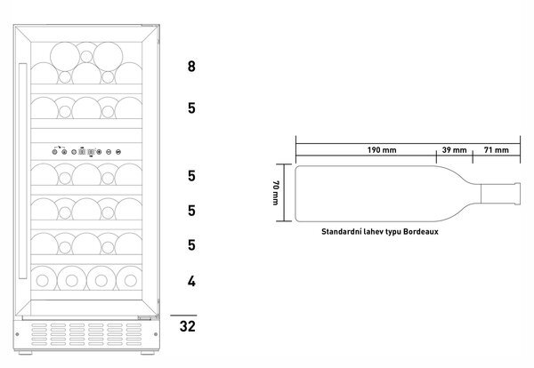 | Внутреннее оснащение | Вместимость: 32 бутылок, Внутреннее освещение |
