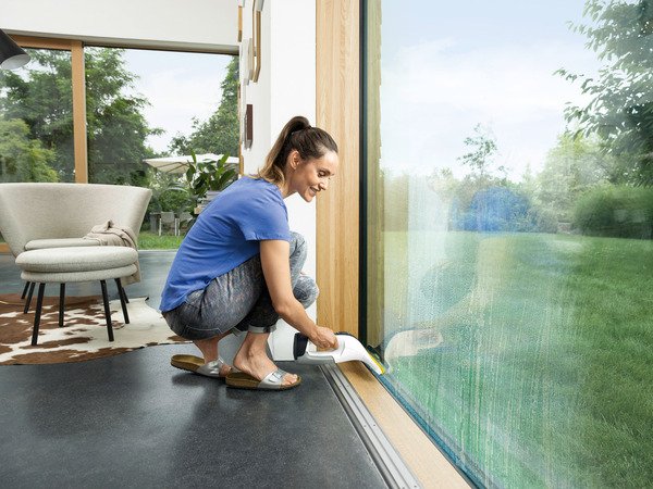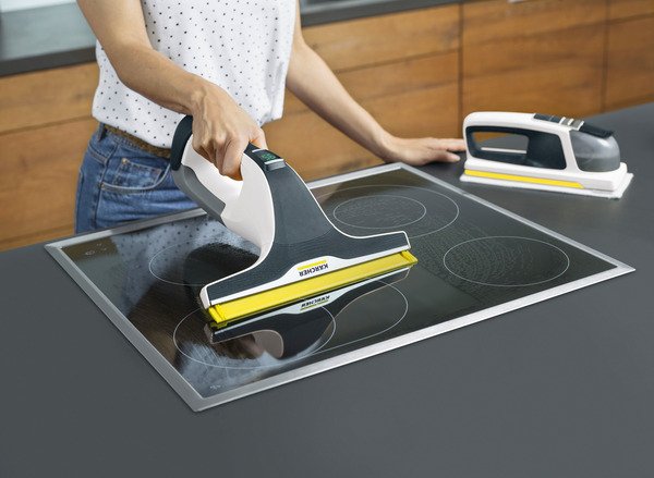 Это делает очистку гладких поверхностей невероятно легкой. Аккумуляторный вибропад KV 4 с электрической системой увлажнения и функцией вибрации легко удаляет грязь с поверхности без необходимости оттирания. Избыточную жидкость можно затем удалить с помощью оконного пылесоса WV 6, который не оставляет ни капель, ни разводов. Продленное время работы от аккумулятора до 100 минут и гибкая всасывающая насадка для очистки поверхностей одним движением выделяют WV 6 из линейки оконных пылесосов и идеально подходят для очистки поверхностей от самого пола и вплоть до края окна без разводов. В комплектацию KV 4 входит дополнительная салфетка, четыре бутылочки моющих средств по 20 мл, зарядное устройство и дополнительные принадлежности.