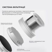 В пылесосе используется двойная система фильтрации, которая обеспечивает чистоту воздуха и поддерживает мощность всасывания. Технология циклона отделяет мусор от потока воздуха, а НЕРА-фильтр удерживает мелкие пылинки и вредные микрочастицы.