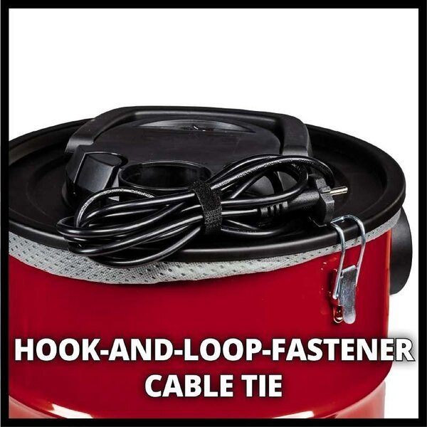 Пылесос для золы Einhell TC-AV 1718 DW обеспечивает легкую и аккуратную уборку золы с мангалов, печей и каминов. Максимальная мощность всасывания составляет 170 мбар. Контейнер объемом 18 литров рассчитан на длительное использование. Оснащен армированным металлическим шлангом (длина 36 мм - 1 м) и алюминиевой всасывающей трубкой. Чистоту воздуха при сборе золы обеспечивает гофрированный фильтр и дополнительный предварительный фильтр для лучшей фильтрации. Это предотвращает быстрое засорение основного фильтра. Быстро открывающиеся замки пылесоса Einhell TC-AV 1718 DW позволяют быстро открыть контейнер для уборки. Для удобства использования и мобильности имеется ручка для переноски. Когда шнур питания не используется, его можно свернуть и закрепить застежкой-липучкой для удобства хранения. Есть возможность использовать функцию продувки, подключив шланг к адаптеру продувки,