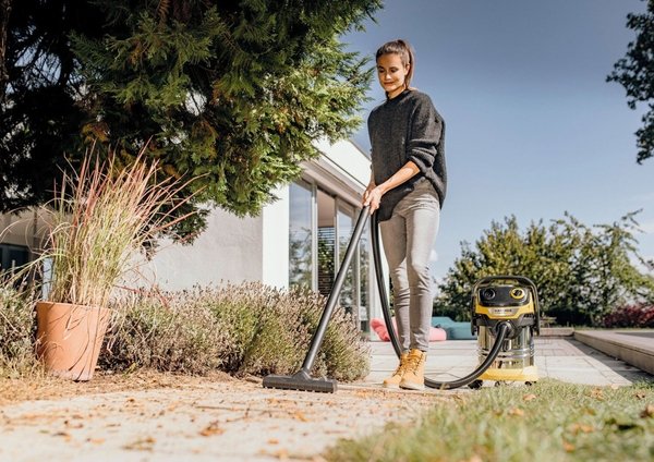 Хозяйственный пылесос WD 5 S V-25/5/22 оптимально сочетается с входящими в комплект его поставки всасывающим шлангом и переключаемой насадкой для пола, благодаря чему при невысокой потребляемой мощности (1100 Вт) гарантируются превосходные результаты сбора мусора всех видов – сухого или влажного, крупного или мелкого. Аппарат оснащен прочным 25-литровым мусоросборником из нержавеющей стали, 5-метровым кабелем, всасывающим шлангом длиной 2,2 м со съемной антистатической рукояткой, переключаемой насадкой для пола, плоским складчатым фильтром и фильтр-мешком из нетканого материала. Плоский складчатый фильтр позволяет чередовать операции влажной и сухой уборки без затрат времени на замену фильтра, а запатентованная система его быстрого извлечения исключает контакт с грязью. Система очистки фильтра, активируемая нажатием кнопки, обеспечивает быстрое восстановление полной силы всасывания. Благодаря съемной конструкции рукоятки насадки могут присоединяться непосредственно к всасывающему шлангу, который может компактно и надежно храниться в верхней части аппарата. Для быстрого и удобного закрепления удлинительных трубок и насадки для пола предусмотрены держатели, сформованные в отбойнике пылесоса.