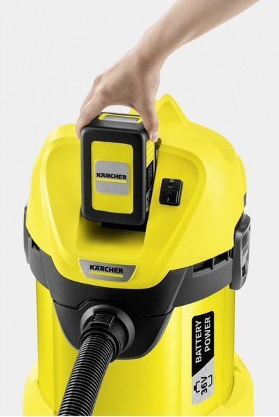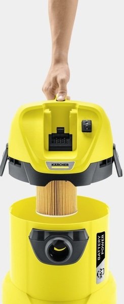 WD 3 Battery такой же функциональный, как и хозяйственный пылесос с кабелем, но не требует подключения к сети. В зависимости от аккумулятора его время работы составляет от 15 до 30 минут (аккумулятор не входит в комплект поставки). Гибкий аккумуляторный хозяйственный пылесос также имеет прочный и ударостойкий пластиковый контейнер емкостью 17 литров, а также патронный фильтр для легкой уборки сухого и влажного мусора без необходимости замены фильтра. Оптимизированный всасывающий шланг и насадка для пола со специальной вставкой помогают обеспечить оптимальный сбор грязи и гарантируют идеальную чистоту. Еще одной практичной деталью является съемная ручка, которая позволяет прикреплять аксессуары непосредственно к всасывающему шлангу. Практичное положение парковки позволяет удобно закреплять всасывающую трубку и насадку для пола во время перерывов.