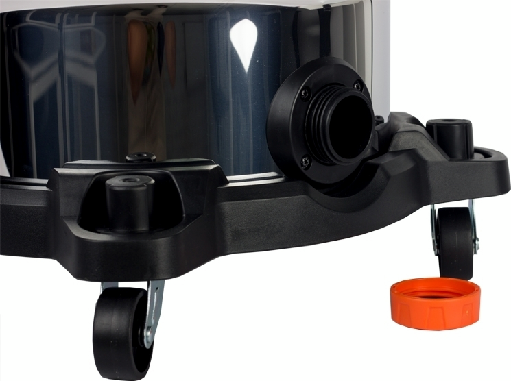Корпус из нержавеющей стали гарантирует долговечность и устойчивость к коррозии, он устойчив к воздействию химических растворов и не требует особого ухода. Мусор с острыми краями можно всасывать непосредственно в бак, не опасаясь повредить его.
