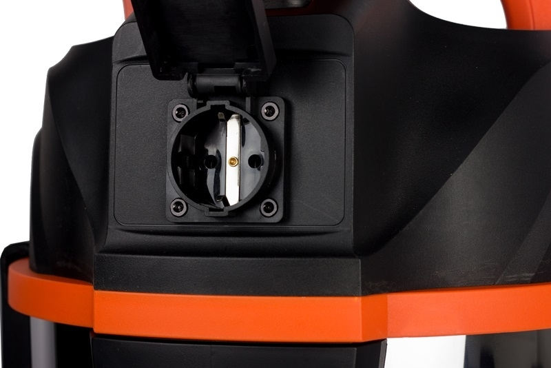 Полуавтоматическая система очистки фильтра позволяет работать без перерыва даже с самой мелкой фракцией мусора до полного заполнения бака. А индикация заполнения бака подскажет, когда нужно очистить фильтр или бак пылесоса. Специальное отверстие для слива значительно облегчает очистку пылесоса после уборки воды. Розетка для электроинструмента и режим парной работы упрощает работу и позволяет сохранить чистоту, убирая пыль сразу с объекта работы. Продувка шланга после завершения работы электроинструментом позволяет сразу приступить к следующим задачам без необходимости тратить на это Ваше время.